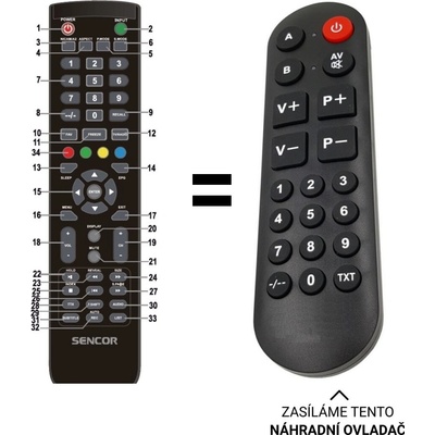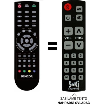 Náhradní dálkový ovladač SENCOR 19LED412PVR, 23LED412PVR, HLE24F01T, SLE24F47DM4, SLE1956M4, SLE22F47DM4, SLE24F56M4, SLE24F58M4 - 100% náhrada 1:1 za originální dálkový...