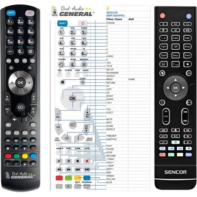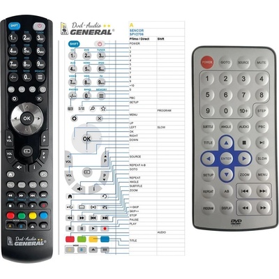 Náhradní dálkový ovladač Sencor SPV2706. Tento ovladač je dodáván ve verzi značkového ovladače General DVD a pošleme Vám jej již nakonfigurovaný pro Váš přístroj. Nevyžaduje...