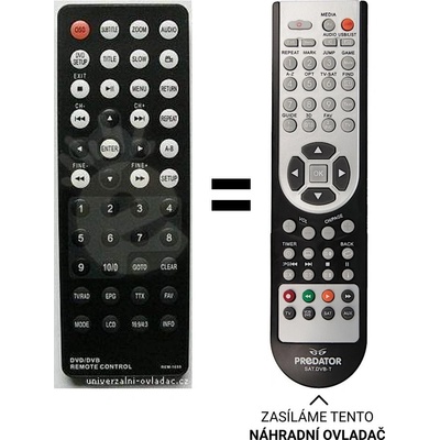 Sencor náhradní dálkový ovladač BEZ ZADÁVÁNÍ KÓDŮ. Pro COMBO TV+DVD sencor SLT-1958DVD, SLT-1958DVD, SLT2258DVD, SLT2259DVD.