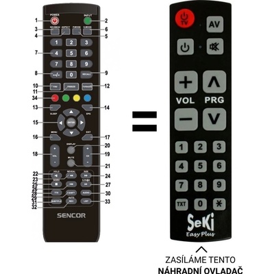 POUZE ZÁKLADNÍ FUNKCE. BEZ ZADÁVÁNÍ KÓDŮ Náhradní dálkový ovladač sencor. Například pro model SLE43F11 m4