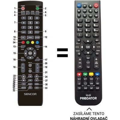 Náhradní dálkové ovladače Sencor. Má všechny funkce jako originál. Nevyžaduje žádné programování. Stačí vložit baterie. Také pro SDB2012T