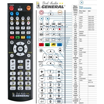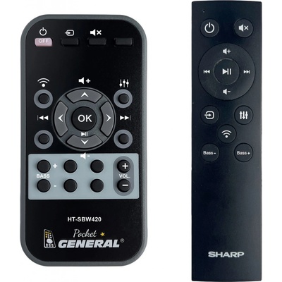 Dálkový ovladač SHARP HT-SBW420 (HTSBW420) duplikát 1:1 originálního dálkového ovladače. Dálkový ovladač General POCKET duplikát má naprosto všechny funkce a popisky tlačítek...