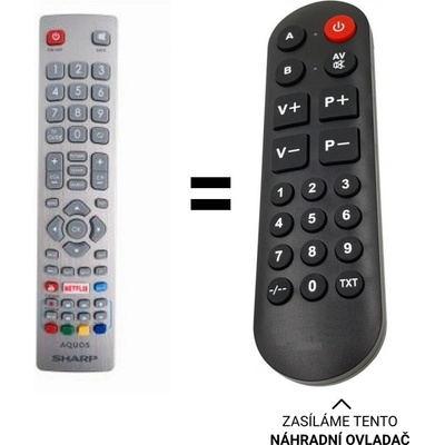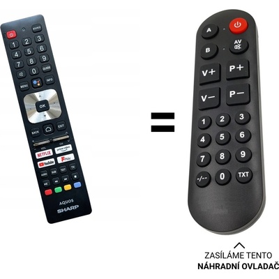 POUZE ZÁKLADNÍ FUNKCE. náhradní dálkový ovladač pro seniory pro sharp. BEZ HLASOVÉHO OVLÁDÁNÍ. Například pro 40FI6EA, 50FP5EA, 65EQ4EA, 65EQ6EA, 65EQ7EA, 65FN2EA, 70DN5EA,...