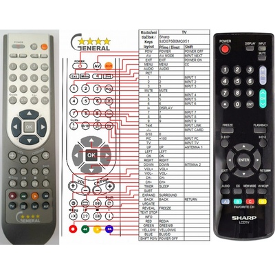 POUZE ZÁKLADNÍ FUNKCE. Sharp náhradní dálkový ovladač pro LC40FG3242E BEZ NUTNOSTI ZADÁVAT KÓDY.
