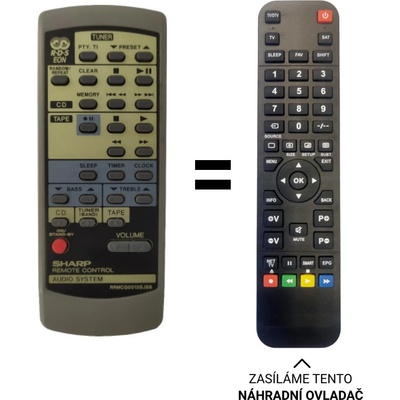 Náhradní dálkový ovladač jiného vzhledu, například pro audio Sharp XL-570H, XL-UH222H, XL-UH240, XL-UR2180H, XL-UR2380H, XL-UR2580H, XLUH242.