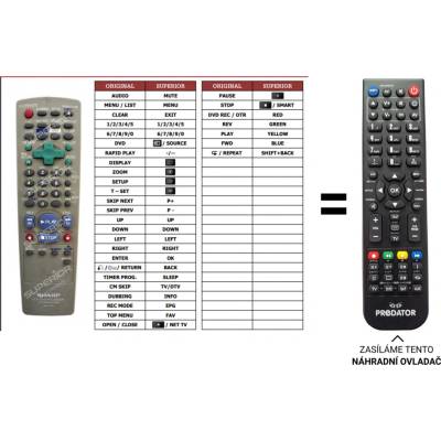 Sharp náhradní dálkový ovladač NEPOTŘEBUJE KÓDY. Pro DVD i VCR, NB204ED (9HSNB204ED)