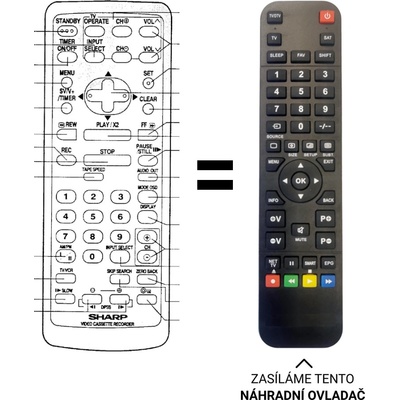 Náhradní dálkový ovladač pro VCR Sharp VC-M260BM, VC-M270BM, VC-MH460BM, VC-MH470BM. Nepotřebuje kódy