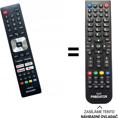 Náhradní dálkový ovladač jiného vzhledu pro sharp. BEZ HLASOVÉHO OVLÁDÁNÍ. Například pro 40FI6EA, 50FP5EA, 65EQ4EA, 65EQ6EA, 65EQ7EA, 65FN2EA, 70DN5EA, 70DN5KA, 70FL2EA,...