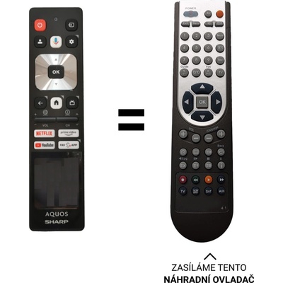 Náhradní dálkový ovladač pro televizory SHARP AQUOS bez solárním panelem a hlasových funkcí . Například pro 43GR8465E, 50GR8765, 65GR8265E, 55GR8265E, 43GR8265E, 70GP6760E...