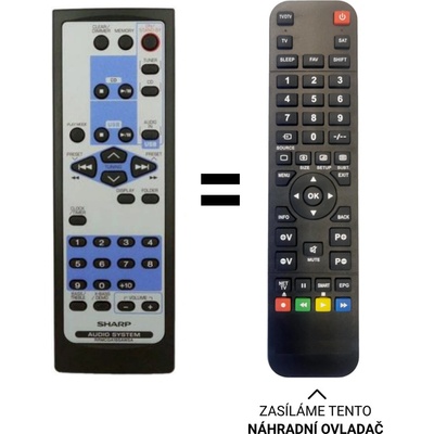 Sharp náhradní dálkový ovladač. BEZ ZADÁVÁNÍ KÓDŮ. Pro modely: LC-15SH2E, LC-20SH2E, LC-13SH1E, LC-15SH1E, LC-20SH1E