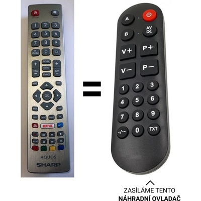 POUZE ZÁKLADNÍ FUNKCE Sharp náhradní dálkový ovladač pro televizory sharp: LC-24LE210E, LC-24LE220E, LC-32LB220E, LC-32LE210E LC-32LE220E, LC-32LS220E Náhradní dálkový ovladač:
