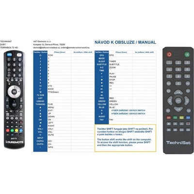 Náhradní dálkový ovladač TECHNISAT TERRABOX T2 HD - 100% náhrada 1:1 za originální dálkový ovladač. Dálkový ovladač byl vyvinut speciálně na míru pro tyto modely značky...