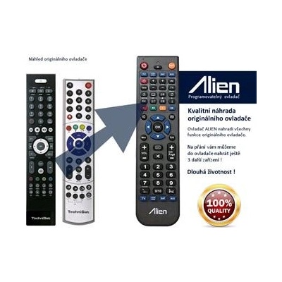 Dálkový ovladač TechniSat TechniStar SIR Kvalitní náhradní dálkové ovládání jiného vzhledu pro přijímače TechniSat. Pod značkou ALIEN získáte kvalitní a levnou náhradu...