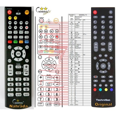 POUZE ZÁKLADNÍ FUNKCE. Náhradní dálkový ovladač Technisat. NEPOTŘEBUJE KÓDY TECHNISTAR K4 ISIO Neumí ovládat Technibox sir.
