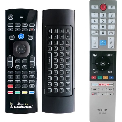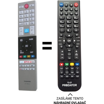 Toshiba náhradní dálkový ovladač za CT8543 bez nutnosti zadávání kódů. Například pro CT-8543 RC42151P 30101775 32L2863DG, 32L2963DGL , 32LL2A63DG, 43T6863DG, 48T6863DG,...