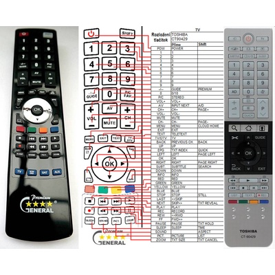 Náhradní dálkový ovladač TOSHIBA CT-90427, CT-90428, CT-90429, CT-90430, CT-90444 (CT90427, CT90428, CT90429, CT90430, CT90444) - 100% náhrada 1:1 za originální dálkový ovladač....
