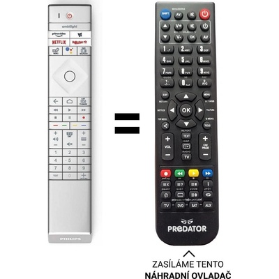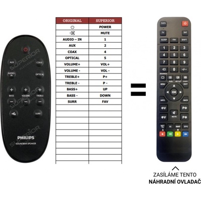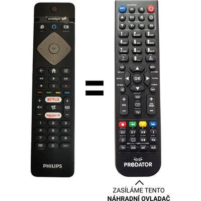 Philips náhradní dálkový ovladač. NEPOTŘEBUJE KÓDY. Ovladač vám přijde již připraven k použití. Funkce které jsou k dispozici: zapnuti, vypnutí, přepínání vstupů, čísla, mute,...