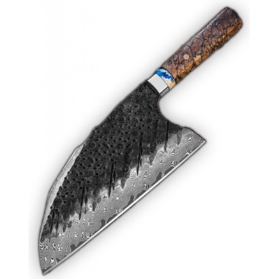 Robustní damaškový sekáček s precizním jádrem — design i výkon, který ocení nároční kuchaři.