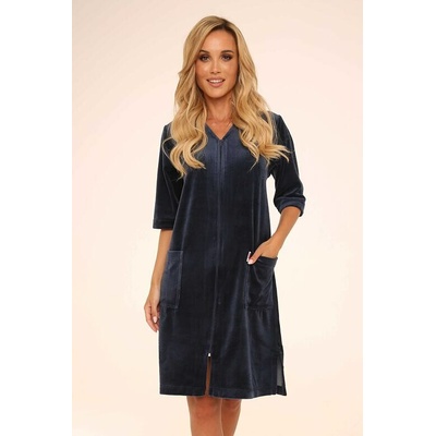 Dlouhý dámský župan L&L 9156 na zip s kapucí modrá župan dámský značky L&L - vyrobeno z měkké pleteniny s puntíky- dámský župan s kapucí- dámský župan na zip- jemná...
