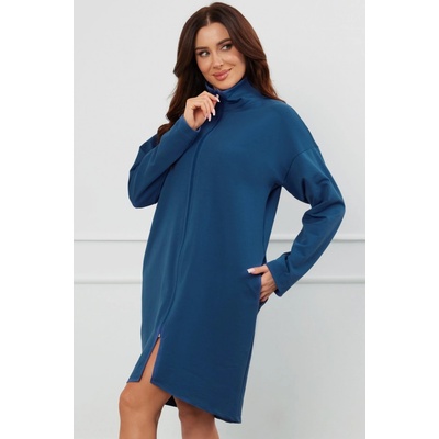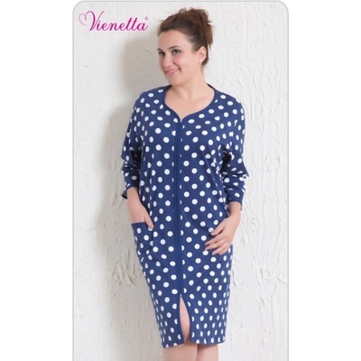 Tenký bavlněný župan - domácí šaty - celé na rozepínání na zip. Modrý župan s bílými puntíky, na pravé straně, ve výšce boků, jedna kapsa, tříčtvrteční rukáv. Na doma, na pláž,...