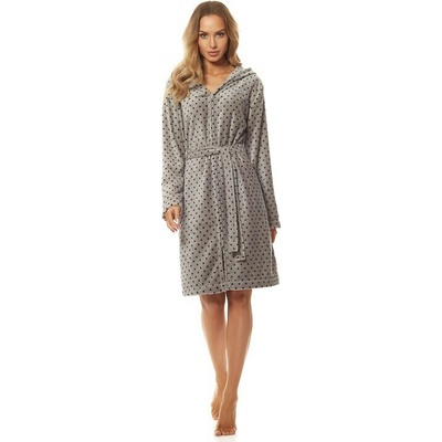 Dlouhý dámský župan L&L 9156 na zip s kapucí šedá župan dámský značky L&L - vyrobeno z měkké pleteniny s puntíky- dámský župan s kapucí- dámský župan na zip- jemná...