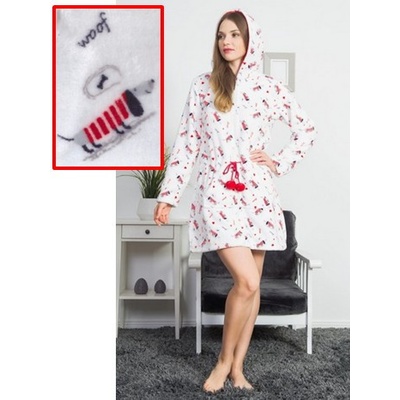 Krátký župan na zip, s kapucí a bambulemi. Dámský krátký župan, celý potištěný obrázky pejska v červeném svetříku, myslí na kost. V pase kontrastní šňůrka, zakončená bambulemi,...