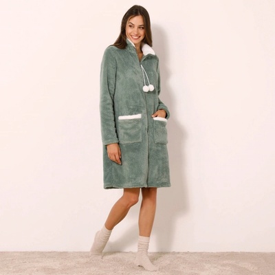 Dlouhý hřejivý župan s kapucí a se zipem, má rovnou siluetu, kapsy v bočním švu a dvoucestný zip. Flanelový fleece vám zajistí, že se budete cítit komfortněji než kdy jindy a...