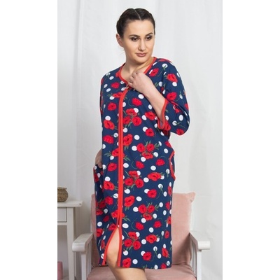 Tenký bavlněný župan - domácí šaty na zip, s tříčtvrtečním rukávem, se vzorem Vlčí Mák. Zapínání na zip, po celé přední straně, po bocích kapsy na drobnosti. Velikosti až do 4XL.