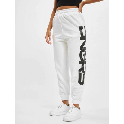 Dámské tepláky značky Dangerous DNGRS bílé barvy. Černý potisk loga na levé nohavici. Pohodlný střih. Materiál: 50% bavlna, 50% polyester
