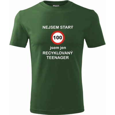 Lahvově zelené tričko jsem recyklovaný teenager 100. nabízené velikosti jsou S,M,L,XL,XXL,XXXL. Tričko je zařazeno v sekcích Dárek pro muže k 100, . Technologie tisku: Tisk na...