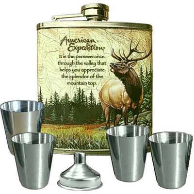 Placatka jelen kazeta se 4 panáky rozměry v cm: výška 10 cm, šířka 9,5 cm, tloušťka 2,2 cmobjem: cca 1,75 dcl specifikace: nerezová placatka s motivem jelena na obou stranách...