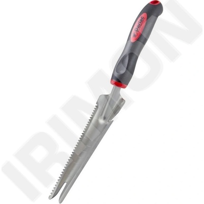 Nerezový nástroj s ergonomickou rukojetí s protiskluzovou úpravou. Vybaveno pilkou na řezání kořenů, řezákem na menší kořeny a provázky, ukazatelem hloubky, vidlicí na vytrhávání plevele a otvírákem pytlů např. s kůrou nebo s hnojivem.