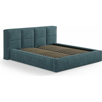 Modrá čalouněná dvoulůžková postel s úložným prostorem s roštem 200x200 cm Simon Darren – Micadoni