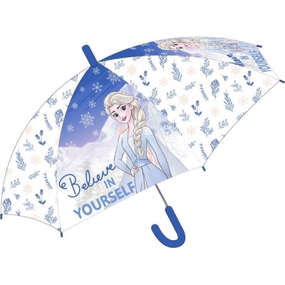 Dětský vystřelovací deštník Ledové království - Frozen - motiv Believe in yourself, tedy česky Věř v sebe. Konstrukce deštníku je kovová se samo rozevíracím mechanismem, potah...