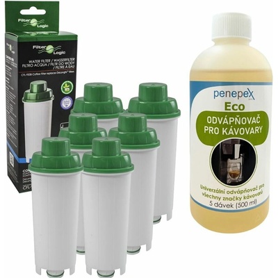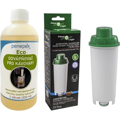 Kompletní sada pro údržbu kávovaru DeLonghi - filtr CFL-950B (6 ks) + Eco odvápňovačUdržujte svůj kávovar DeLonghi v perfektním stavu s praktickým setem, který spojuje filtr FilterLogic CFL-950B a ekologický univerzální odvápňovač Penepex Eco 500 ml. Tato kombinace...