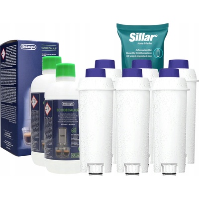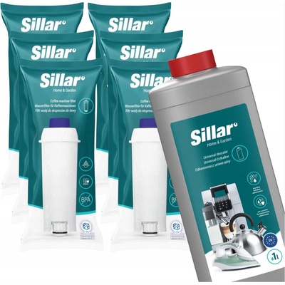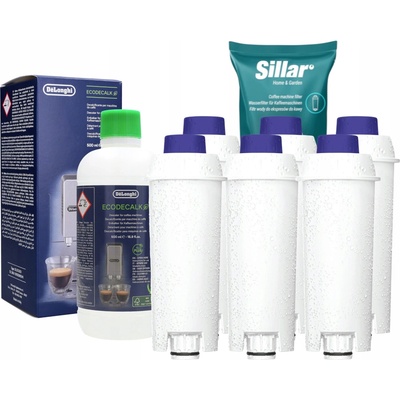 Sada Sillar pro kávovar Delonghi: 6 x filtr na vodu + odvápňovač 1 l ✅ Filtr vody Sillar pro kávovary DeLonghi se směsí aktivního uhlí a iontoměničové pryskyřice. Účinně...