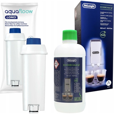 Sada pro kávovar Delonghi: vodní filtr AquaFloow + originální odvápňovač Delonghi Ecodecalck DLSC500 500ml Sada obsahuje: ✅ Odvápňovač Delonghi DLSC500 500 ml - 1 kus ✅ Vodní...