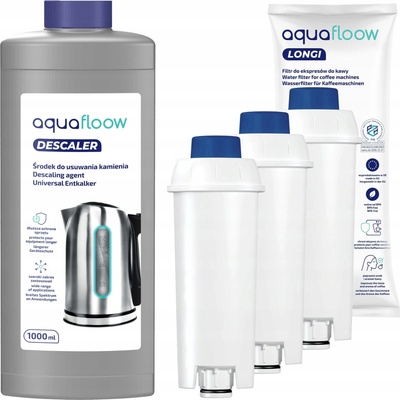 Sada AquaFloow pro kávovar Delonghi: 3 x filtr na vodu + odvápňovač 1 l Sada obsahuje: ✅ Odvápňovač AquaFloow Descaler 1 l - 1 kus ✅ filtr na vodu AquaFloow Longi – 3 kusy...