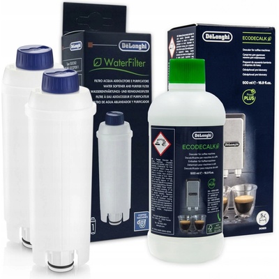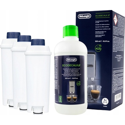 Sada pro kávovar Delonghi Součástí balení jsou: - Filtr do kávovaru DELONGHI DLSC002 3 ks - Odvápňovač pro kávovar Delonghi EcoDecalk 5513291781 500 ml Vodní filtr DLSC002...