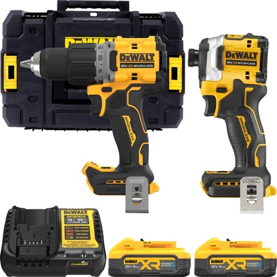 DeWALT DCK2062M2T - Výkonná 2-dílná aku sada pro profesionální použití, obsahující vrtací šroubovák a úhlovou brusku. - Vrtací šroubovák s bezuhlíkovým motorem pro delší...