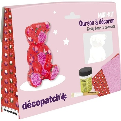 Sada obsahuje 1 figurku medvěda z bílého kartonu (9x8,3x4,5cm - d x v x š), 1ks lepidla na decoupage 45g, 1 šteteček 9cm a 2ks papíru na decoupage 40x30cm - 2 různé...