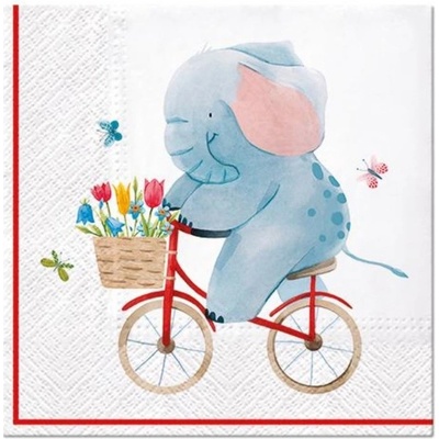 Ubrousky na dekupáž Elephant on Bike 1 ks