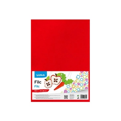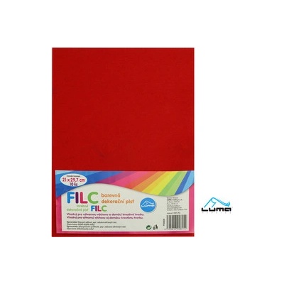 \n\nbarevný filc vhodný pro výrobu dekorací- lze s ním pracovat jako s látkou- lze šít i lepit na papír, dřevo- barva: červená- rozměr: 21 x 29,7cm- gramáž 180g/m2\n\n