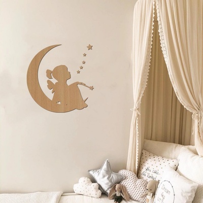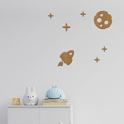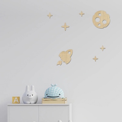 Dřevěná dekorace do dětského pokoje LET NA MĚSÍC Dřevěná dekorace LET NA MĚSÍC ozdobí každý dětský pokojíček a dovolí dětem popustit uzdu fantazii a ocitnout se tam, kde ony...