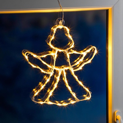 LED dekorace do okna, anděl, bateriová - pro vnitřní použití • 35 ks teplých bílých LED • 2 přísavky jsou příslušenstvím • ON/OFF/TIMER (6h On /18h Off) opakování časovače •...
