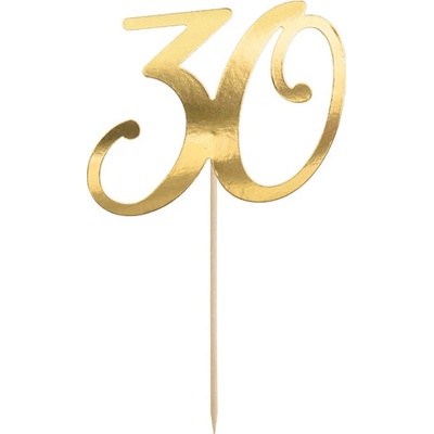 Dekorace na dort je vyrobena ze zrcadlového zlatého papíru na dřevěné tyčce. Výška výrobku je 20,5 cm.