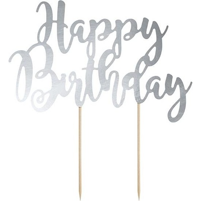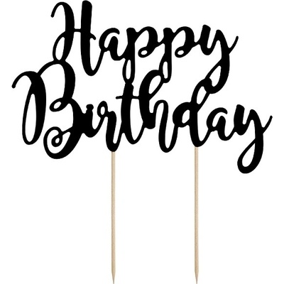 Dekorace na dort Happy Birthday Zapichovací dekorace na narozeninovou oslavu. Stylový doplněk pro narozeninovou party v elegantní černé barvě. Výška nápisu: 12 cm Celková...