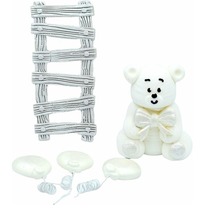 Cukrová dekorace na dort s motivem medvídka se žebříkem a balónky. V balení je medvídek, žebřík a balónky. Cukrová dekorace na dort Medvídek s žebříkem Cukrová dekorace s...