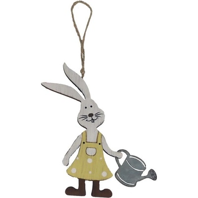 Dekorační velikonoční zajíček k zavěšení. Rozměry: 11,5 x 0,5 x 13 cm. Materiál: dřevo. Barva: bílá, žlutá. Tento výrobek není hračka.