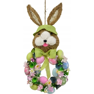 Věnec se zajícem a vajíčky žlutý 57x25 cm BerryHome Tento okouzlující věnec se zajícem a vajíčky o rozměrech 57x25 cm je perfektní volbou pro ozdobení vašeho interiéru během...